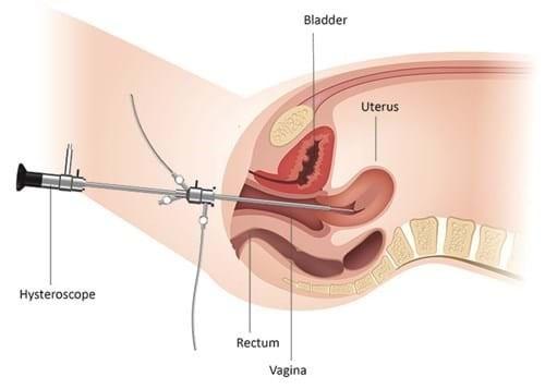 Key point: Hysteroscopy is performed through the cervix. There are no abdominal incisions.