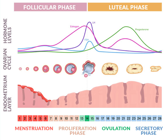 A typical cycle has two phases. In the first half, oestrogen helps the lining thicken. After ovulation, progesterone stabilises the lining. If pregnancy doesn’t happen, progesterone drops and the lining sheds as a period.
